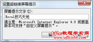 屏幕提示按钮:单击该按钮可以给包含超链接的单元格添加屏幕提示。