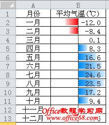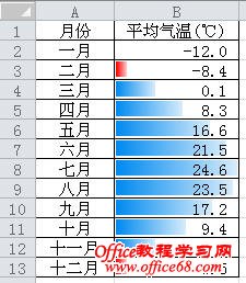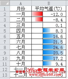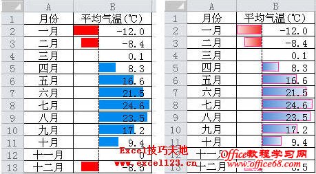 数据条是Excel 2007中新增的功能之一,利用该功能可以非常直观地查看区域中数值的大小情况。然而,在Excel 2007中,数据条功能还有些不尽如人意的地方。Excel 2010发布在即,在新版本中数据条功能作了哪些改进呢? 1.合乎比例的数据条长度 下图是在Excel 2007中制作的某城市月平均气温数据表,我们在平均气温列中设置了数据条: 从图中可以看出四月份平均气温为8.3℃,五月份平均气温为16.6℃,后者正好是前者的两倍,但从数据条的长度来看,显然不成比例。这是因为Excel 2007中默认将区域中的最小值所对应的数据条长度设置为单元格长度的10%,将最大值所对应的数据条长度设置为单元格长度的90%,其他介于二者之间。 这一点在Excel 2010中将得到改进,如下图所示。 2.增加负值数据条显示方式 上图中,区域中的负值数据条显示在相反的方向上,并且设置为不同的颜色,看上去更加醒目。除此之外,还可以将坐标原点放置在单元格中间、或让负值数据条与正值数据条显示在同一方向上。 在同一方向显示负值数据条时,可以看到数据条的长度还是不成比例,不知在正式版发布后这一点能否得到改进。 3.包含错误值时仍可设置数据条 当区域中包含错误值时,在Excel 2007中无法设置数据条,而在Excel 2010中已可以设置了,如下图。 4.更加灵活的数据条格式 Excel 2007中数据条的填充色为渐变色,这有利于看清单元格中的数值。但也带来一个问题,当几个单元格中的数值比较接近时,无法看清哪一个更大,如图一中六月和八月的平均气温。在Excel 2010中可以设置不同的数据条格式,例如可以将数据条设置为纯色填充,将数据条加上边框等。 但有利也有弊,用纯色填充数据条或设置边框时,不利于看清单元格中的数值,Excel 2010提供多种选择,用户可以根据实际需要灵活设置 |