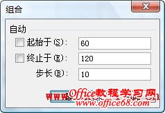 Excel将弹出“组合”对话框。如果“语文”列中包含空白项,即未输入数值“0”的单元格,Excel将无法自动分组数据,因而会弹出“选定区域不能分组”的对话框。然后根据需要在“组合”对话框中的“起始于”、“终止于”及“步长”后的文本框中输入相应的数值。本例中统计的分数段为60分-120分,每10分为一个分数段。