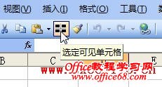 如果经常要进行复制可见单元格的操作,可以将Excel中隐藏的“选定可见单元格”命令添加到工具栏中,以方便操作。在Excel 2003中步骤如下: