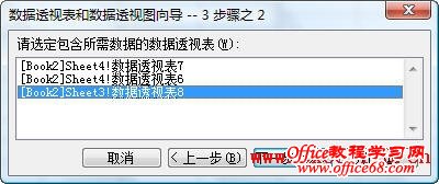 3.在“数据透视表和数据透视图向导--3 步骤之2”对话框中,选择需要共享缓存的数据透视表。
