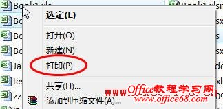在Excel2007中,如果有多个工作簿需要同时打印,可以不用打开这些工作簿而直接进行打印。方法是: 1.单击“Office按钮→打开”,在“打开”对话框中,按住Ctrl键依次选择需要打印的工作簿。注意所选择的工作簿为相同类型的,如都为“xls”或都为“xlsx”。 2.在某个选定的工作簿名称上右击鼠标,在弹出的快捷菜单中选择“打印”。如果所选工作簿类型不同,快捷菜单中将不会出现“打印”命令。 Excel将依次打开这些工作簿,并打印其中的活动工作表,即保存工作簿时处于活动状态的工作表。打印完毕后这些工作簿会自动关闭 |