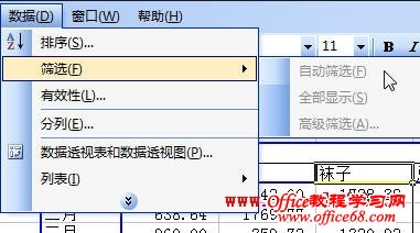 如果要为数据透视表中数据区域中的字段添加自动筛选,在Excel 2003中可以用下面的两种方法,对于Excel 2007用第一种方法即可。