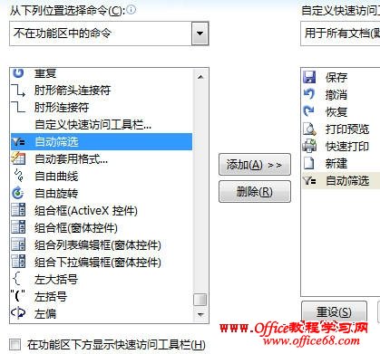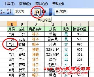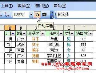 通常在Excel中进行自动筛选时,首先要选择数据区域中行标题所在单元格,然后单击菜单“数据→筛选→自动筛选”(Excel 2003),或在功能区中选择“数据”选项卡,在“排序和筛选”组中单击“筛选”按钮(Excel 2007)。最后单击单元格中的筛选按钮,在弹出的筛选列表中进行选择。其实Excel中还有一个快速筛选命令,该命令可以根据所选单元格值快速进行自动筛选。这个命令虽称作“自动筛选”,但它和菜单或功能区中的“自动筛选”或“筛选”命令有所不同,因为菜单或功能区中的“筛选”命令只能将筛选按钮添加到单元格中,要进行筛选还要打开筛选列表。而该命令不仅将筛选按钮添加到行标题单元格中,同时还根据所选单元格值进行了筛选操作,显得十分快捷方便。 一、将“自动筛选”命令按钮添加到工具栏中。 Excel 2003: 1.单击菜单“视图→工具栏→自定义”,弹出“自定义”对话框。 2.在“类别”下选择“数据”,在“命令”下方选择“自动筛选”命令,将其拖动到“常用”工具栏中。 3.关闭“自定义”对话框,在工具栏中可以看到“自动筛选”命令。 Excel 2007: 1.单击“快速访问工具栏”右侧的“自定义快速访问工具栏”按钮,在弹出的菜单中选择“其他命令”。 2.在弹出的“Excel选项”对话框中,在“从下列位置选择命令”下方的下拉列表中选择“不在功能区中的命令”,拖动滚动条至底部,选择“自动筛选”。单击“添加”按钮,将其添加到右侧区域中。 3.单击“确定”按钮,将该命令添加到快速访问工具栏中。 二、使用“自动筛选”命令进行快速筛选操作 例如在下图中,我们要快速筛选出月份为“7月”的记录。选择包含“7月”的单元格,如E4单元格,然后直接单击工具栏中的“自动筛选”按钮。 可以看到,Excel自动为行标题添加了自动筛选按钮,同时还筛选出了所有7月份的记录。 需要说明的是,该方法仅对区域有效,而当区域转换为Excel表或Excel列表时无效。另外在Excel 2007中,还可以通过右击所选单元格,在弹出的快捷菜单中选择“筛选→按所选单元格的值筛选”来进行筛选操作 |
