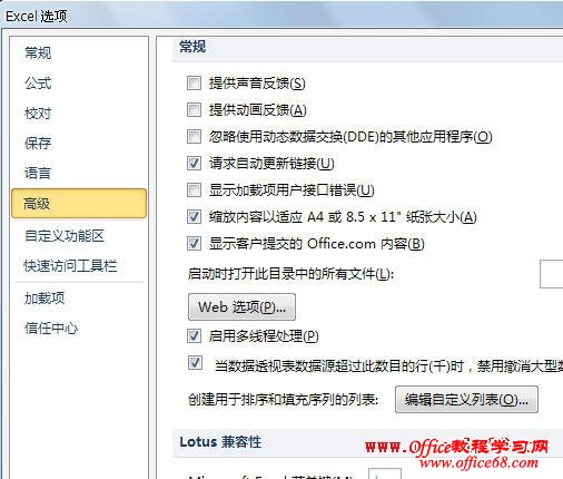 而在Excel 2010中,“编辑自定义列表”按钮的位置发生了变化,可以在菜单“文件→选项→高级→常规”中找到该按钮。