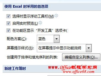 自定义序列是Excel中的一个非常实用的功能,在不同的Excel版本中,打开“自定义序列”对话框的方法不尽相同。在Excel 2003中,“自定义序列”是“选项”对话框中的一个选项卡,通过单击菜单“工具→选项→自定义序列”来自打开。在Excel 2007中,可以单击“Office按钮→选项→常规”,在“使用Excel时采用的首选项”下单击“编辑自定义列表”按钮来打开“自定义序列对话框”。