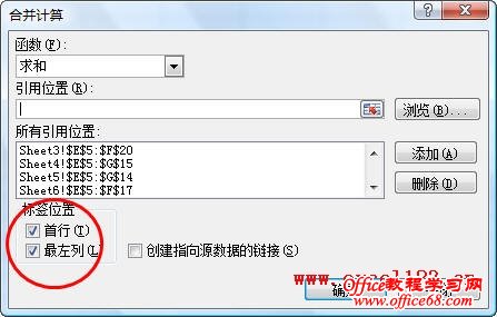 在Excel中,可以用许多方法对多个工作表中的数据进行合并计算。如果需要合并的工作表不多,可以用“合并计算”命令来进行。例如下图所示在某个工作簿的不同工作表中包含一些类似的数据,每个区域的形状不同,但包含有一些相同的行标题和列标题。 现在需要将这几张工作表中的数据合并到“汇总”工作表中,步骤如下。 1.在“汇总”工作表中,选择数据合并后所在区域的左上角单元格,如本例中要将合并后的数据放到B2:K12区域中,则选择B2单元格。 在Excel 2003中,单击“数据→合并计算”。在Excel 2007中,在功能区中选择“数据”选项卡,在“数据工具”组中单击“合并计算”命令。Excel弹出“合并计算”对话框。由于本例中是进行数据合计,因此在对话框中“函数”下方的下拉列表中保持默认的“求和”选项。 2.选择某个包含合并数据的工作表,再选择整个数据区域,包括行标题和列标题。例如在上述第一张图中,数据在E5:H17区域中,选择该区域,然后单击“添加”按钮。 3.依次选择所有包含合并数据的工作表及区域,添加区域到“所有引用位置”下方的区域中。 4.由于本例中的所有数据区域都有类似的行标题(如“鼠标”等)和列标题(如“1月数量”等),因此在对话框下部的“标签位置”下勾选“首行”和“最左列”。这样Excel将对相同的行标题和列标题中的数据进行合并计算。 5.单击“确定”按钮。合并后的数据如图。 |