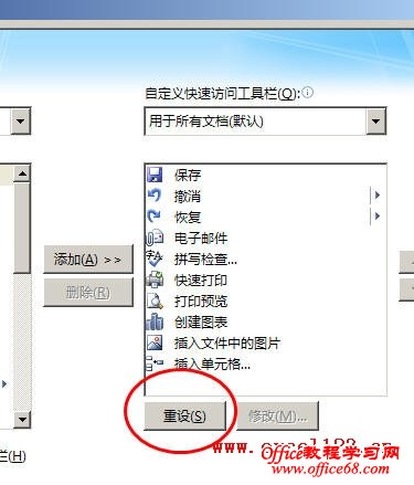如何恢复默认的Excel2007快速访问工具栏