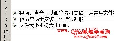 1.在单元格内的文本前插入一个空格,按左方向键回到空格的左侧。这样做是为了让插入的项目符号与文本之间适当保留一些距离。
