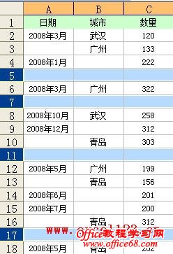 如果数据区域中不仅包含空行,还有一些无规律的空单元格,如下图。这时用可以用筛选的方法来删除空行。