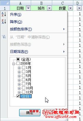 对于Excel 2007,筛选时先取消“全选”,再勾选“空白”。