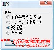 2.在Excel 2003中,单击菜单“编辑→删除”,弹出“删除”对话框,选择“整行”。单击“确定”删除空行。