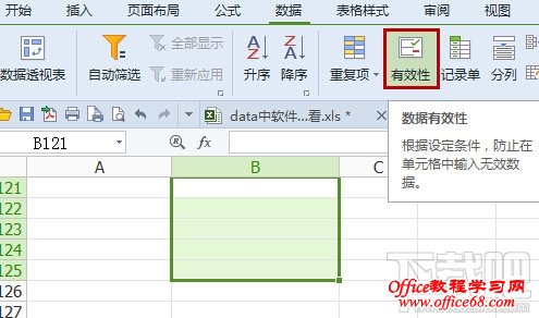 1、打开Excel,选中单元格,找到【数据】-【有效性】;