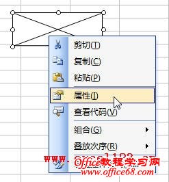 3.这时光标会变成细十字形,在工作表中画出一个矩形。右击该控件,选择“属性”。