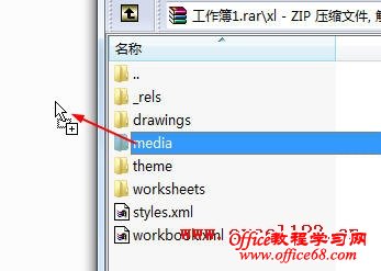 3.返回上一级文件夹,用鼠标左键将“media”文件夹拖到某个桌面或某个文件夹中。即可得到工作簿中的全部图片。