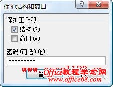 这样,就对工作簿的结构设置了保护,用户如果不知道密码则无法复制、删除或插入工作表,也不能修改工作表名称。如果在上述对话框中选择了“窗口”,会禁止用户更改工作表窗口大小和位置。
