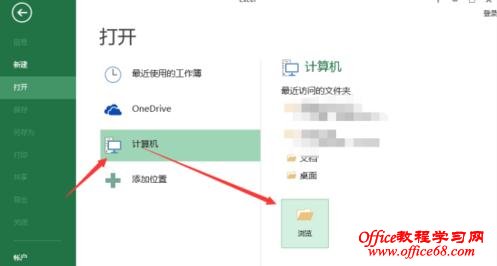 2、在跳转到的打开页面,依次点击“计算机”-->“浏览”选项命令。如图所示;