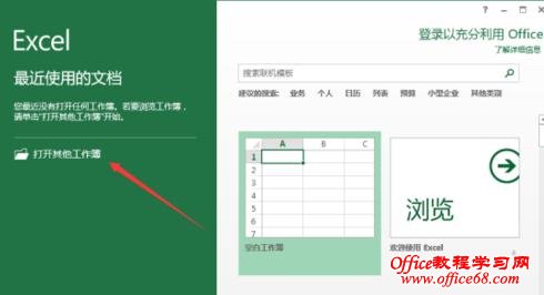 1、鼠标左键双击计算机桌面Excel2013工作表程序图标,将其打开运行。在打开的Excel2013工作表程序窗口,点击左侧窗格的“打开其他工作簿”选项。如图所示;