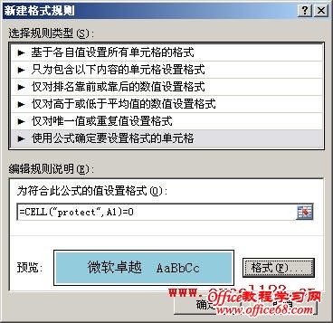在Excel 2003中,在“条件格式”对话框最左侧的下拉列表中选择“公式”,然后在右侧文本框中输入上述第一个公式,单击“格式”按钮为符合条件的单元格设置某种格式。