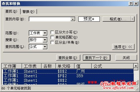 2.在“查找和替换”对话框中,单击“查找全部”按钮,Excel会找出所有未锁定的单元格,并将其显示在“查找和替换”对话框的下部区域中。此时按快捷键Ctrl+A,工作表中所有未锁定的单元格会被选中。