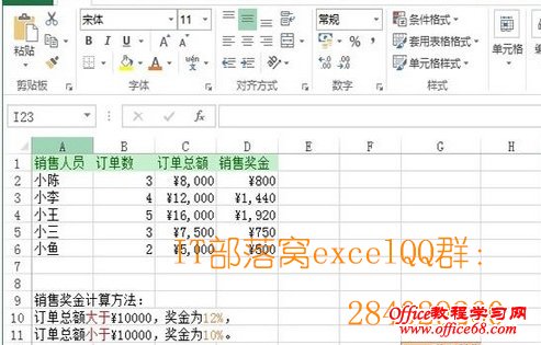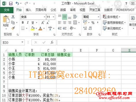 我们可以使用Excel里面的相关函数来计算,当达到一定条件时,按某个数值进行计算;未达到时又按照另外一个计算,由此我们立即想到了IF函数,下面就是实例演示。 ①启动Excel2013,粗略制作出下面的表格数据,当销售金额超过10000时,按照12%计算;没有超过则按照10%计算。