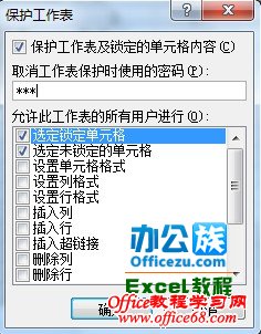 5 在“保护工作表”页面框中输入取消工作表保护时的密码(这样就不会随意被别人取消保护)。