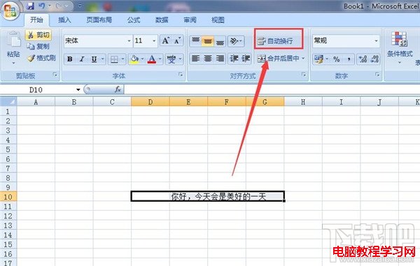 2、选择文字,在菜单栏找到自动换行选项,点击(因为有些版本不一样,如果上面没有直接选择的自动换行,那么你可以右键,找到单元格设置,里面也有);