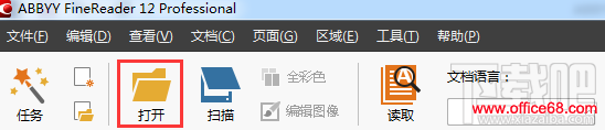 步骤一:打开ABBYY FineReader 12,在主工具栏上点击打开。