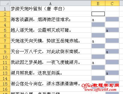 如果需要在Excel工作表的某个区域中隔行插入一个或多个空行,除了使用VBA、辅助列+排序的方法外,还可以用辅助列+定位的方法。例如要在A1:A23区域中隔行插入一个空行,步骤如下: 1. 以B列和C列作为辅助列,在B2和C3单元格中输入任意数字或字母,如图。 选择B2:C3区域,双击或拖动填充柄向下填充至A列最后一个包含数据的行。之所以要在两辅助列中交错填充数字或字母,是因为要不连续地选择各行中的单元格以便隔行插入空行。当然,在行数不多的情况下,按住Ctrl键然后手动逐一选择各行中的某个单元格,再插入空行也可以实现隔行插入空行的目的。另外,如果选择连续的单元格区域,Excel将在这些单元格的上方插入与所选行数相同数量的空行,而不是隔行插入空行 2. 按F5键,打开“定位”对话框,单击“定位条件”按钮,在弹出的“定位条件”对话框中选择“常量”,单击“确定”。 Excel将选择B、C两列中包含字母的单元格,可以看出这些所选的单元格是不连续的,这样就可以同时在每个选择的单元格上方插入空行。 3. 在Excel 2003中,单击菜单“插入→行”。在Excel 2007/2010中,在“开始”选项卡的“单元格”组中单击“插入→插入工作表行”。Excel会隔行插入一个空行。 如果要隔行插入多个空行,选择B列和C列,再次执行“定位”→插入空行操作即可。 4. 删除辅助列 |