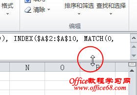 4.将鼠标指针放到行标题和编辑栏之间,鼠标指针变成上下箭头状,双击鼠标会将编辑栏调整到最适合的高度,或上下拖动鼠标调整编辑栏高度。