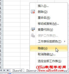 方法二:右击所选择的工作表标签,在弹出的快捷菜单中选择“隐藏”即可。