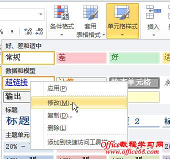 Excel 2003中默认的超链接样式为“宋体,12,蓝色,下划线”,当我们在Excel中输入网址或邮箱地址等超链接后,单元格中显示的就是这种样式。有时不希望超链接显示为默认的格式,例如在某个已设置好单元格格式的区域中输入超链接时,超链接会按照默认的样式显示而与已设置好的单元格格式不一致。遇到这种情况,可以修改该工作簿中的默认超链接样式,方法如下: Excel 2003: 打开工作簿,单击菜单“格式→样式”,打开“样式”对话框,在“样式名”右侧的下拉列表中选择“超链接”。如果下拉列表中没有“超链接”项,可先在工作表中输入任意超链接,再打开“样式”对话框。 可以看到Excel中超链接默认的字体样式为“宋体,12,蓝色,下划线”。 取消选择“字体”选项,即不对超链接设置任何样式。如果要修改为其他样式可单击“修改”按钮进行设置。单击“确定”。 这样设置以后,在单元格中输入的超链接就会与原单元格格式保持一致。 Excel 2007/2010: 选择“开始”选项卡,在“样式”组中单击“单元格样式”,弹出样式库列表。在“数据和模型”下右击“超链接”,在弹出的快捷菜单中选择“修改”。 如果此处没有出现“超链接”样式,原因是工作簿中还不存在超链接,先在某个单元格中输入任意超链接即可。 可以看到默认的超链接字体样式为“宋体(正文),11,下划线”。 取消选择“字体”选项,即不对超链接设置任何样式,单击“确定”。 必须注意的是,该设置仅对当前工作簿有效,对于新建的工作簿,输入的超链接仍然是原来的默认样式 |