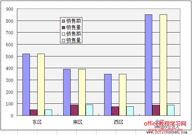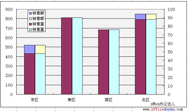 第三步,前一个销售量C的柱子和后一个销售额D的柱子变成无色无边框。