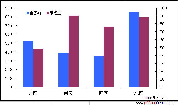 有时我们会碰到两列数据的值相差很大,如果做只有一个Y轴的柱形图,效果比较差,改怎么办呢?这里介绍“左右柱形图”来解决这种尴尬。