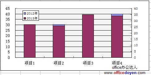 第二步:数据系列格式-坐标轴-选择次坐标轴。 第三步:左右坐标轴设置为相同坐标值。 第四步:删除右侧坐标轴,调整两个条形图分类间距(如220)。 第五步:进行其他格式化修饰,最终效果: ![]() |