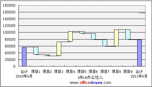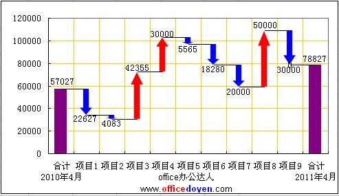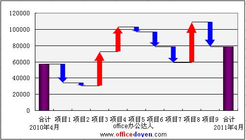 第六步:进行其他格式化,不再一一细述,达到如上图效果,OK,一个完美的瀑布图完成。