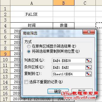 Excel没有提直接供筛选整点时间的方法,但可以使用辅助列+公式或公式+高级筛选的方法来筛选。假如数据在A5:B28区域,其中A列为时间,要筛选出整点的时间记录。