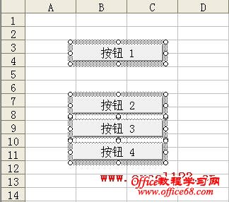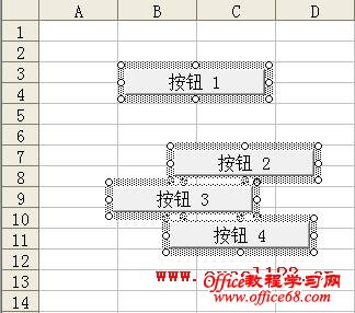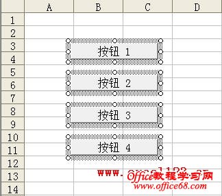 例如在工作表中通过“窗体”工具栏插入了4个按钮,现在需要将其对齐。