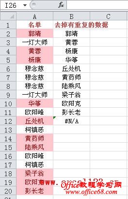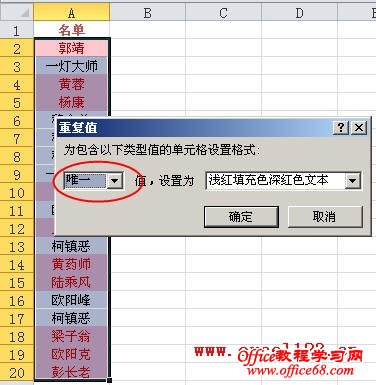 如果Excel中的某列存在一些重复的数据,要将该列所有重复的数据全部删除,即凡是重复的数据都不予保留,仅保留只出现一次的数据,可以用下面的方法。 方法一:对没有重复的数据进行标记,排序后删除重复项 这种方法适用于Excel 2007和Excel 2010。假如数据在A2:A20区域中,以Excel 2010为例。 1.选择A2:A20区域,在功能区中选择“开始”选项卡,在“样式”组中单击“条件格式→突出显示单元格规则→重复值”,弹出“重复值”对话框。在左侧下拉列表中选择“唯一值”,单击“确定”。区域中没有重复的单元格数据都被设置为指定的颜色。 2.右击某个设置颜色的单元格,在弹出的快捷菜单中选择“排序→将所选单元格颜色放在最前面”。Excel会将该列排序并将设置颜色的单元格放置到最前面。 3.删除没有标记颜色的数据即可。 方法二:用数组公式提取唯一值 在B2中输入数组公式: =INDEX($A$2:$A$20,MATCH(1,COUNTIF($B$1:B1,$A$2:$A$20)+IF(COUNTIF($A$2:$A$20,$A$2:$A$20)>1,0,1),0)) 或: =INDEX($A$2:$A$20,SMALL(IF(COUNTIF($A$2:$A$20,$A$2:$A$20)=1,ROW($1:$19),""),ROW(A1))) 公式输入完毕后按Ctrl+Shift+Enter结束,然后拖动填充柄向下填充公式,直到出现“#N/A”或“#NUM!”为止。 |