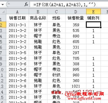1.在辅助列中输入公式,对符合条件的数据行进行标记。如以E列为辅助列,可在E2中输入公式: