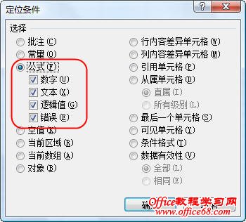 如果要了解一个Excel工作表中有哪些单元格包含公式,可以用“定位”的方法: 1.选择工作表中的某个单元格,按F5键打开“定位”对话框。 2.单击“定位条件”按钮,在弹出的“定位条件”对话框中选择“公式”。 3.单击“确定”。Excel将选择工作表中所有包含公式的单元格。 |