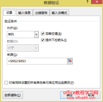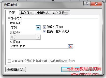 • 在“来源”框中选择部门列表下的数据,单击“确定”按钮。