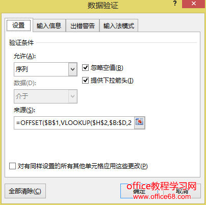 1. 对二级“市”设置数据有效性。因为我们需要根据一级G2单元格选择的不同,设置不一样的下拉列表,而每个一级“省”会有不一样个数的二级“市”,所以我们借助offset函数来完成。在H2单元格设置数据有效性的“来源”位置,输入以下公式:=OFFSET($B$1,VLOOKUP(G2,$B:$D,2,0)-1,0,VLOOKUP(G2,$B:$D,3,0),1)。