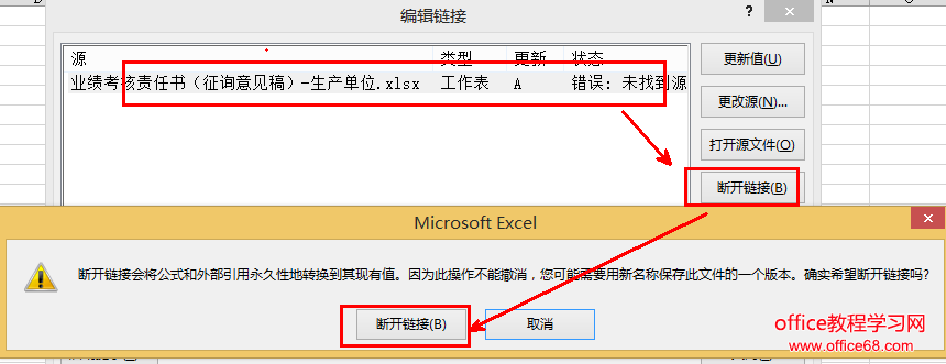 如果单击【编辑链接】,在弹出的对话框中选中链接,单击【断开链接】,在弹出的警告框中继续选中【断开链接】,但该链接依然存在,无论如何也无法断开,怎么办?