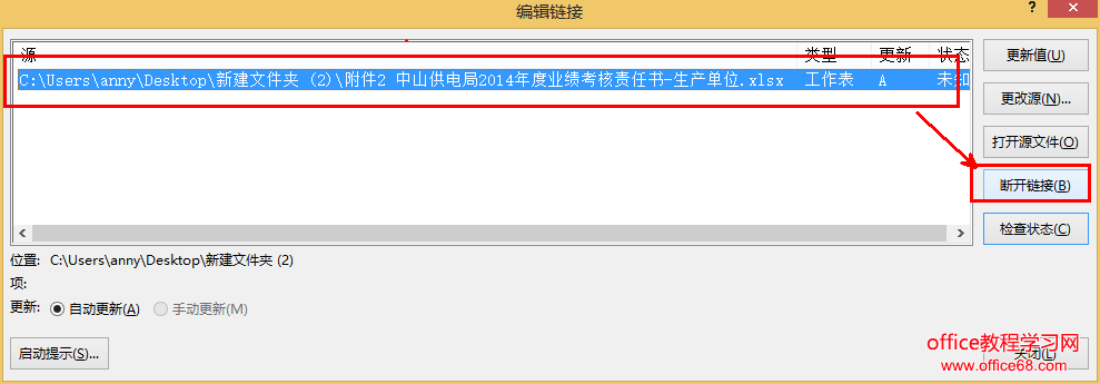 选中列表中的链接,然后单击“断开链接”即可。