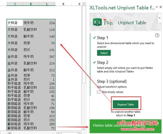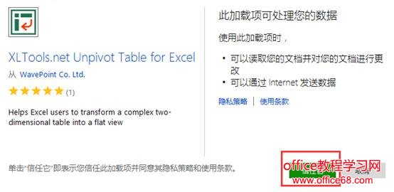首先,来到“插入”选项卡,打开“Office应用程序”。 ![]() 然后,进入到“Office应用程序”界面,进行插件的搜索。我们将要使用到的插件叫做“XL Tools.net Unpivot Table For Excel”。点击安装即可。 ![]() ![]() ![]() 最后,稍等片刻,它将会出现在你的Excel窗口的最右端。 ![]() 现在,你可以使用了! 二 巧用“XL Tools.net Unpivot Table For Excel”操作方法非常简单,分三步走: 1. 选择要进行转换的二维表格 ![]() 2. 在空白区域选取一个单元格作为将要放置转换好的一维表格的起始位置。 ![]() 3. Let’s “Unpivot Table” ![]() 最后的最后,你只需要按照个人喜好给你的表格设置个样式就好了,然而这并不是必要的,曾经花费我们大量时间的表格的二维转一维工作就这样轻松实现了,是不是觉得非常简单呢?Office应用程序里还有很多好用的插件,快去寻找吧! |
