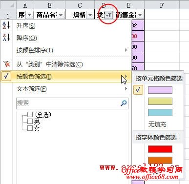 有时需要在Excel中按单元格颜色进行自动筛选,通常可以使用下面的两种方法: 方法一:辅助列+宏表函数GET.CELL(或自定义函数) Excel 2003没有提供直接筛选颜色的方法,可以用宏表函数GET.CELL或自定义函数在辅助列中获取单元格颜色或字体颜色索引值,然后按颜色索引值进行筛选即可,具体方法见本站《在Excel2003中按颜色进行排序》一文。这种方法同样适用于Excel 2007/2010,还有一点是用这种方法可以同时筛选多种不同的颜色。 方法二:在Excel 2007/2010中直接筛选颜色 在Excel 2007/2010中可以直接按单元格或字体颜色进行筛选,方法是单击筛选箭头,在筛选器中选择“按颜色筛选”,然后在“按单元格颜色筛选”或“按字体颜色筛选”中选择某个颜色即可。 选择“无填充”将筛选出没有填充颜色的单元格,选择“自动”将筛选出没有设置字体颜色的单元格。美中不足的是,这种筛选方法不能同时筛选多种颜色 |