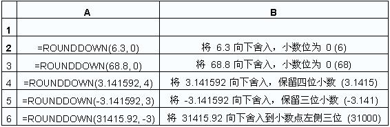 函数 ROUNDDOWN 和函数 ROUND 功能相似,不同之处在于函数 ROUNDDOWN 总是向下舍入数字。