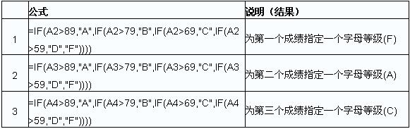 在上例中,第二个 IF 语句同时也是第一个 IF 语句的参数 value_if_false。同样,第三个 IF 语句是第二个 IF 语句的参数 value_if_false。例如,如果第一个 logical_test (AVERAGE > 89) 为 TRUE,则返回“A”;如果第一个 logical_test 为 FALSE,则计算第二个 IF 语句,以此类推。