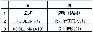 • 如果省略 reference,则假定为是对函数 COLUMN 所在单元格的引用。